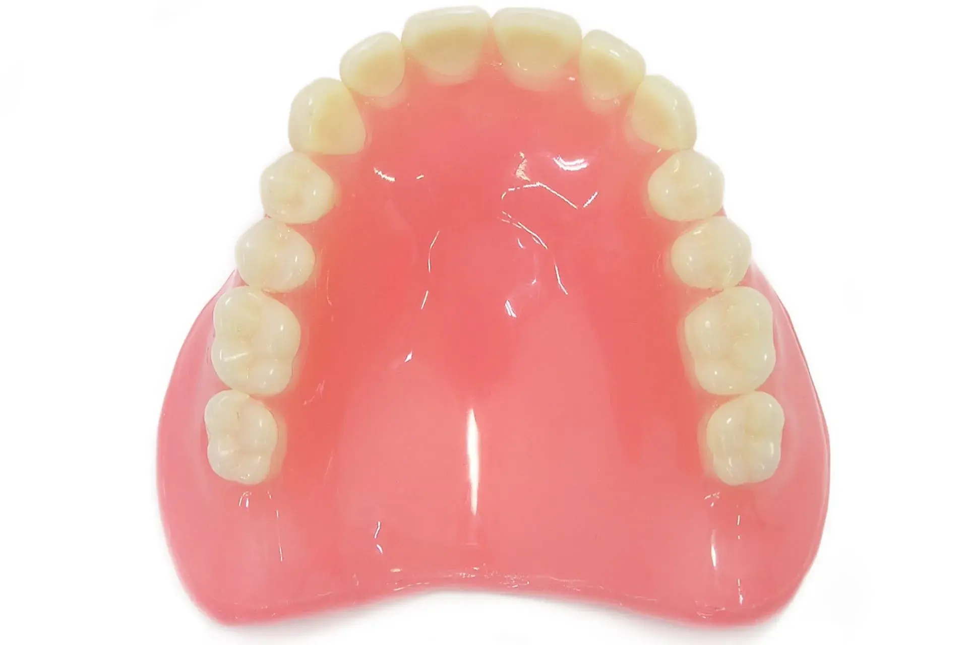 プラスチックのレジン床で作られ、厚みがあり違和感や壊れやすさがある。見た目や噛みやすさは限られるが、費用が安く修理もしやすい。