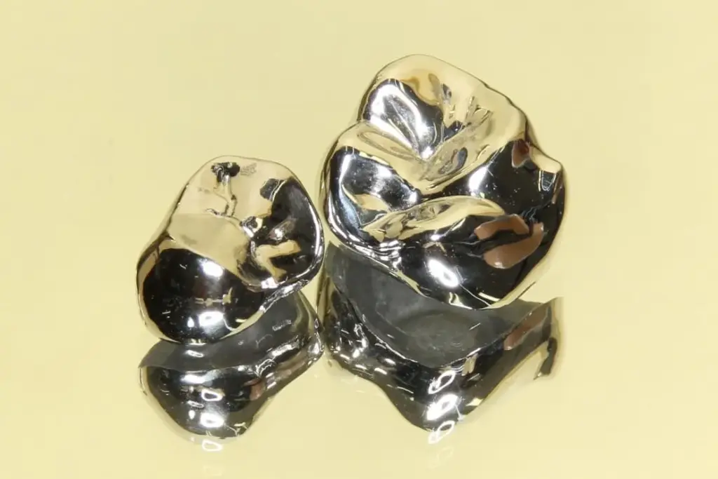 前歯は白いレジンやCAD/CAM冠、奥歯は銀歯が多く、見た目や耐久性に限界があるが、費用が安く修理もしやすい。